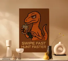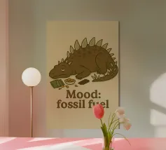 Un barista Godzilla con un sorriso radioso, che serve il caffè con un grembiule e una tazza decorata con il simbolo delle radiazioni. Questa opera d'arte gioca con l'idea di aver bisogno di una spinta nucleare al mattino. Perfetto per gli amanti del caffè, dei mostri simpatici e del caos accogliente.