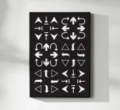 Questa opera d'arte grafica in bianco e nero con motivo a freccia presenta una composizione moderna che si ripete, creando un senso di movimento ed energia. La tavolozza monocromatica dà un senso di semplicità ed eleganza. L'uso delle frecce simboleggia la direzione.