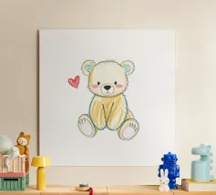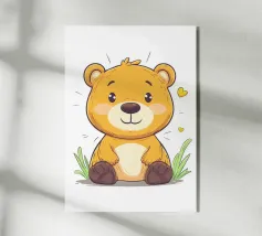 Questa affascinante illustrazione di un orso in legno combina un design minimalista con il calore del legno. Un'illustrazione dolce, moderna e nostalgica al tempo stesso, ideale per la primavera e i momenti di intimità.