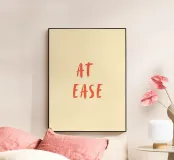 Una stampa tipografica minimalista con la frase "At Ease" in una calda scritta dipinta a mano. Su un morbido sfondo neutro, questo disegno trasmette calma, equilibrio e un senso di pace interiore. Ideale per interni scandinavi, moderni o accoglienti, conferisce un'atmosfera rilassata e consapevole a soggiorni, camere da letto, uffici o spazi creativi.