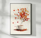 Un delicato gioco di vapore e fogliame, dove il calore di una tazza di caffè sboccia in una cascata di foglie autunnali. "Autumn Brew" celebra la tranquilla poesia dei rituali quotidiani, fondendo il minimalismo con la vibrante tavolozza dell'autunno.