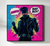 This young man is very fond of himself—he is a bit of a rebel and not always well-behaved. This really comes across in the pop art design.