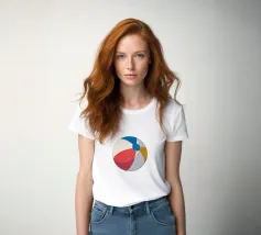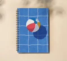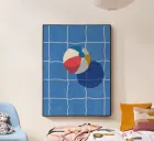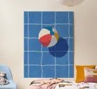 This summery design shows a colourful beach ball floating on the surface of a pool. The blue tiles of the pool and the shadow of the ball add depth to the image, while the colourful and minimalist retro design perfectly captures the lightness and joy of a summer's day. Ideal for lovers of beach and pool motifs.