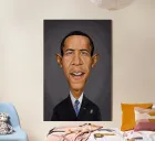 A humorous caricature illustration of the well-known American attorney and politician, who served as the 44th president of the United States; Barack Obama. One of a series of caricatures achieved for the Celebrity Sunday series, where a famous person is rendered within a day. The idea is to show them as if in a passport photo to have consistency.