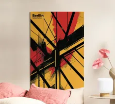 Celebrazione dello spirito audace di Berlino, questo poster astratto mescola linee nette con sorprendenti tonalità rosse e gialle. I motivi sovrapposti suggeriscono movimento ed energia, facendo eco al paesaggio culturale in continua evoluzione della città. Ogni elemento interagisce con gli altri, creando un senso di profondità e dinamismo. Questa composizione grafica è perfetta per chi apprezza l'arte urbana che cattura il cuore di una metropoli vibrante.