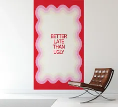Una frase sfacciata con un umorismo senza tempo: Better Late Than Ugly (meglio tardi che male). Perfetto per il bagno, la zona spogliatoio o l'angolo della toilette, questo design unisce una tipografia moderna a uno spirito spensierato, ricordandoci di prenderci il nostro tempo e di farci una risata.