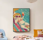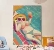 Bikini Cat Pool Float Divertente Pop Art estiva retrò plexiglass