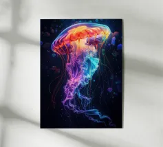 Bioluminescent Jellyfish Floating in the Dark Abyss plexiglass