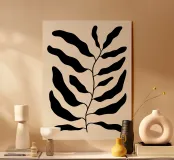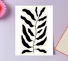 Illustrazione minimalista di un ramo di pianta nero con foglie, pensata per gli amanti della natura e degli interni moderni.