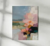 Dieses abstrakte Naturkunstwerk vereint sanfte Pastelltöne in Rosa, Orange, Hellgrau und Petrol zu einer harmonischen Komposition aus organischen Formen und feinen Strukturen. Zarte Pinselstriche und subtile Texturen erzeugen eine ruhige, fast träumerische Atmosphäre. Ideal für moderne Räume, die eine Balance aus Natürlichkeit, Leichtigkeit und künstlerischem Ausdruck suchen.