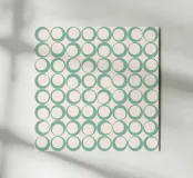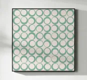 Questo motivo ad anelli retrò blu menta unisce un fascino fresco e retrò con una geometria morbida ispirata agli anni '60 e '70. Le sue curve morbide e ritmiche aggiungono un tocco fresco ed eclettico, ideale per stampe, complementi d'arredo e spazi contemporanei in stile rétro.