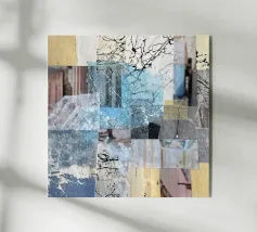 Si tratta di un collage con carta e nastro adesivo colorato. Ho usato il colore acrilico.