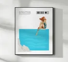 The seventh work in the "Timeless Femininity" series radiates a summery lightness and dreamy elegance. A woman in a turquoise-coloured swimming costume sits at the edge of a pool, her legs gently in the water, which shines in clear blue. Her pose is relaxed, a smile plays on her lips as she savours the moment of tranquillity. The bright blue of the water takes up the majority of the composition and conveys a feeling of space and serenity. A delicately textured white border at the bottom of the picture complements the scene.