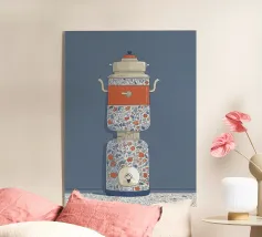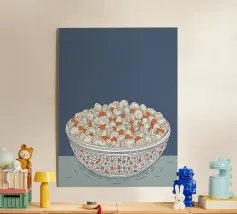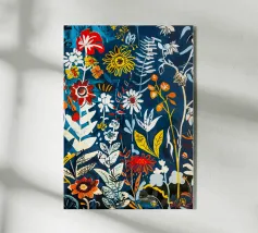 Un campo infinito di fiori grafici nei colori vivaci dell'arancio, del blu e del crema: moderno, giocoso e pieno di energia. La ripetizione ritmica crea una sensazione di infinito e leggerezza. Questo motivo porta il calore dell'estate e una moderna dichiarazione di design in ogni stanza.