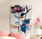 A vertical rhythm of whimsical florals rendered in rose, crimson, plum, and ink. This airy composition evokes a wild garden caught mid-sway—part dreamscape, part botanical notation. A celebration of delicacy, gesture, and natural line.