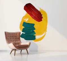 Pennellate audaci e vibranti di rosso, giallo e verde acqua creano una composizione di grande impatto, in cui ogni colore è stratificato e strutturato in modo unico.