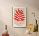 Audace botanica: Parte della collezione Botanical, questa sorprendente stampa d'arte presenta un ritaglio astratto di foglie rosse vivaci su uno sfondo neutro. Il suo design minimalista e il colore deciso la rendono un pezzo unico, perfetto per aggiungere un tocco di moderna eleganza e bellezza naturale a qualsiasi ambiente.
