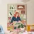 This painting features a person working at a desk surrounded by plants. A cat is sleeping on a shelf above, and the person is focused on their work, creating a productive and serene environment.