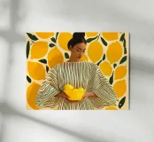 Fresco come un limone e sorprendentemente composto ad arte: Questo motivo combina in modo sorprendente fotografia e pittura. Le strisce chiare dell'indumento contrastano sottilmente con il giocoso motivo del limone sullo sfondo: un dialogo tra struttura e spontaneità. La posa calma della donna e i toni gialli brillanti creano un effetto tranquillo ma intenso. L'occhio non si stanca mai di capire cosa è fotografato e cosa è dipinto. Ideale per ambienti moderni, molto luminosi, con carattere e molta leggerezza mediterranea: case di vacanza, appartamenti, monolocali o per la casa.