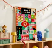 Celebrate la magia della stagione con questa vivace e festosa opera d'arte! Caratterizzato da un allegro mix di forme grafiche e simboli iconici delle festività - tra cui renne, baubles, calze, alberi di Natale, stelle, case, regali, slitte e altro ancora - questo disegno esplode di colori vivaci e di allegria natalizia.