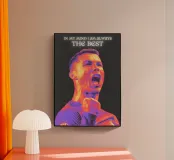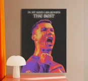 Un ritratto vibrante ed energico di un calciatore che festeggia con la citazione "nella mia mente lam sempre il migliore".