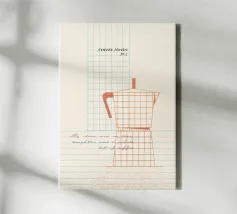 This design combines a love of coffee with a minimalist aesthetic. Perfect for anyone who wants to celebrate coffee enjoyment in their home. A charming highlight for any kitchen or coffee bar!