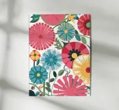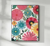 Un campo denso e gioioso di vari fiori stilizzati in una caleidoscopica gamma di colori vivaci. L'illustrazione è una celebrazione della diversità e della bellezza della natura, resa in uno stile grafico e allegro.