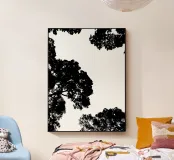 Questa silhouette astratta cattura la tranquilla maestosità delle cime degli alberi che si protendono verso il cielo. L'intricato intreccio di foglie forma forme scure e organiche su uno sfondo bianco, creando un sorprendente contrasto tra natura e spazio negativo. "Canopy Silence" congela il momento fugace in cui si guarda in alto attraverso una foresta, dove il caos della vita si dissolve nella quiete e la bellezza astratta del mondo naturale si rivela in silhouette.