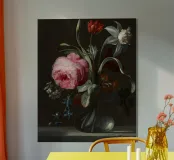 Fiori in vaso di Simon Verelst (1669 circa) mostra una natura morta floreale finemente disposta con dettagli brillanti. Rose, tulipani e altri fiori si dispiegano in un semplice vaso di vetro, magistralmente illuminato nello stile barocco olandese. Quest'opera testimonia la virtuosa tecnica pittorica di Verelst e rappresenta un punto di forza della pittura floreale classica. In mostra al Cleveland Museum of Art.