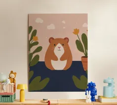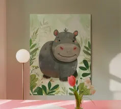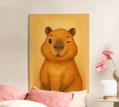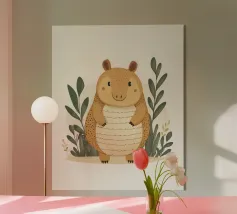 Una scena giocosa di capibara riuniti come piccoli all'asilo, che porta con sé umorismo e calore. I colori tenui e i dettagli affascinanti lo rendono perfetto per le camere dei bambini, le nursery o gli spazi ludici che celebrano la calma, la curiosità e l'unione.