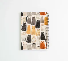 A playful and colorful seamless 2D digital illustration featuring a variety of quirky, stylized cats in various poses. The illustration captures the charm of feline expressions, from curious to content, making it a perfect design for cat lovers and playful decor.