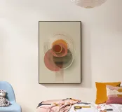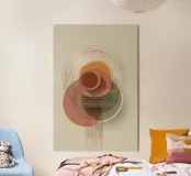 Una composizione astratta ispirata al Bauhaus, caratterizzata da cerchi concentrici sovrapposti, linee radiali e calde tonalità della terra. La geometria equilibrata e le texture raffinate evocano un senso di calma e ordine cosmico, un omaggio moderno alle aureole celesti e al design grafico vintage. Ideale per gli interni che celebrano il minimalismo, la struttura e l'eleganza senza tempo.