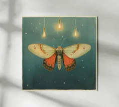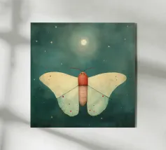 Una mitica falena elementare svolazza in una ricca notte verde acqua, con le sue ali verde salvia accentuate da motivi a goccia dorati e delicate antenne arricciate. Incorniciata da stelle fluttuanti e da una luna crescente, la creatura sognante unisce la brezza marina alla meraviglia cosmica. Stampato su carta opaca d'archivio, ogni venatura delle ali e ogni macchia scintillante rimane intatta. Ideale per studi creativi, angoli di lettura o camere da letto che desiderano un punto focale calmo e curioso, celebra la trasformazione, l'esplorazione e la poesia del volo.