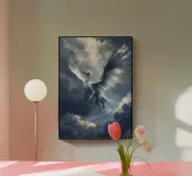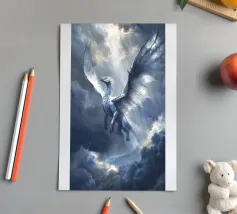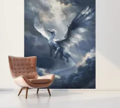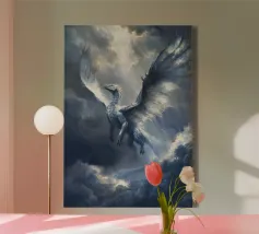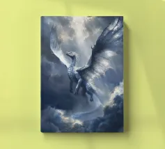 Solcando la tempesta e la luce, il Drago Celeste del Cielo ascende con ali di fuoco argentato. Guardiano dei cieli, porta con sé giudizio e rinnovamento in ogni battito d'ali.