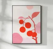 This modern wall mural shows stylised, bright red cherries on a graphically drawn branch with delicate, pink leaves and textures. The combination of bold colour accents and fine textures creates a harmonious interplay of freshness and elegance. The minimalist depiction in pastel and red tones makes this motif an ideal eye-catcher in the kitchen, dining room or creative living room.