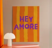 "Hey Amore" - una graziosa tipografia a righe dai colori vivaci che celebra la gioia della famiglia e dell'amore. Perfetta per i matrimoni e come poster romantico.