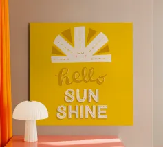The "Hello sunshine" design radiates pure joie de vivre. With a hand-drawn, cheerful sun and playful lettering in shades of yellow, it brings warmth and positivity to your everyday life. Ideal for anyone who wants to start their day with a smile or as a personalised gift.