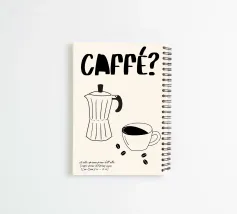 Black and white illustration with moka pot, beans and "Caffè?" lettering. Clean design with a retro touch, perfect for coffee lovers and modern kitchen walls.