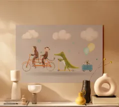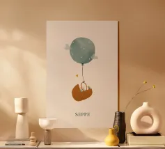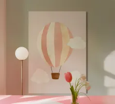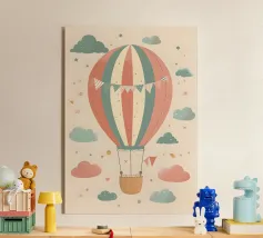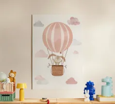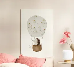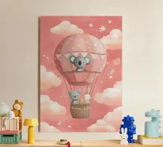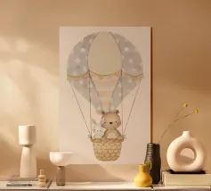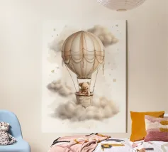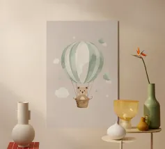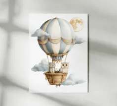 Questa incantevole opera d'arte raffigura un simpatico orso e un piccolo uccello che fanno un giro in mongolfiera, alla deriva in un cielo pieno di soffici nuvole. I colori tenui e le immagini giocose ne fanno un disegno perfetto per i prodotti per bambini, come l'arte murale della nursery e l'abbigliamento. Può anche aggiungere un tocco di fantasia a quaderni, borse o biglietti d'auguri, per tutti coloro che amano le opere d'arte carine e ispirate all'avventura.