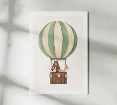 Questa incantevole opera d'arte raffigura un simpatico orso e un piccolo uccello che fanno un giro in mongolfiera, alla deriva in un cielo pieno di soffici nuvole. I colori tenui e le immagini giocose ne fanno un disegno perfetto per i prodotti per bambini, come l'arte murale della nursery e l'abbigliamento. Può anche aggiungere un tocco di fantasia a quaderni, borse o biglietti d'auguri, per tutti coloro che amano le opere d'arte carine e ispirate all'avventura.
