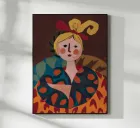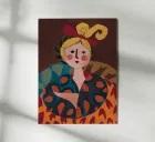 This illustration shows a person with gray hair wearing a colorful striped sweater, with birds perched on the shoulders and head. The pink background and playful elements create a whimsical and joyful atmosphere.