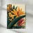 An elegant illustration of tropical leaves and flowers in shades of yellow, orange and red against a light background. A captivating work that evokes the exotic, ideal for a warm, natural setting.