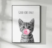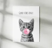 Questo gatto ha semplicemente tutto: fresco, elegante e con un tocco di coolness! Con la sua bolla di sapone rosa e il suo sguardo innocente, diffonde puro buonumore ed è il motivo perfetto per chiunque ami l'energia positiva e l'umorismo. Il design moderno e minimalista combina una sottile illustrazione in bianco e nero con un fresco accento rosa; semplice ma espressivo. Un must per i fan dei gatti, per gli amanti del design e per chiunque voglia farsi notare: casual, moderno e con un pizzico di umorismo.