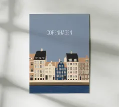 This image showcases the colorful architecture of Copenhagen’s historic buildings in a modern, geometric style. Perfect for adding a touch of Scandinavian charm to your space.