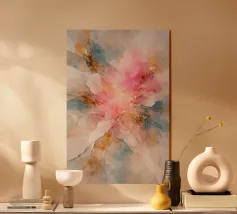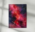 This vibrant and dynamic abstract painting bursts with energy and emotion. Rich hues of red, pink, and purple swirl and blend, creating a sense of depth and movement. Delicate gold accents add a touch of glamour and sophistication, while the overall composition evokes a sense of mystery and wonder. This artwork is sure to make a bold statement in any space.
