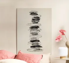 Quest'opera d'arte astratta affascina con una serie di linee curve e fluide che si combinano per formare un motivo armonioso. Le linee nere di varia intensità su sfondo bianco conferiscono al quadro un aspetto moderno e ipnotico. Un pezzo forte ideale per gli interni moderni che enfatizzano l'eleganza semplice e l'arte contemporanea.