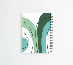Curved lines in shades of green and turquoise create a soothing, abstract pattern against a white background. The black outlines accentuate the organic flow of the shapes.