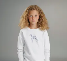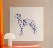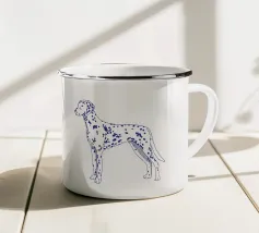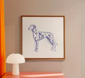 Blue line drawing of a Dalmatian. The dog motif is best suited to very light backgrounds.