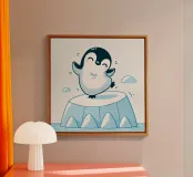 Bringe mit diesem minimalistischen Poster eines tanzenden Pinguins Freude und Verspieltheit in dein Zuhause. Der fröhliche Pinguin mit übertrieben großen Flügeln und Füßen tanzt auf einer Eisscholle und strahlt Lebendigkeit und Spaß aus. Die klaren Linien und sanften Farben im skandinavischen Stil machen dieses Poster zu einer idealen Wanddekoration für moderne Wohnräume oder Kinderzimmer. Dieses liebevoll gestaltete Poster eignet sich auch perfekt als Geschenk zur Geburt oder Taufe und zaubert jedem Betrachter ein Lächeln ins Gesicht.