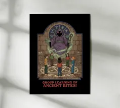 A group of hooded cultists stands in a dark ritual circle, accidentally summoning an adorable orange kitten instead of a fearsome demon. This design hilariously mixes the spooky aesthetic of dark magic with the unexpected cuteness of a floating cat. Perfect for cat lovers, goth geeks, and anyone who appreciates a bit of chaos.